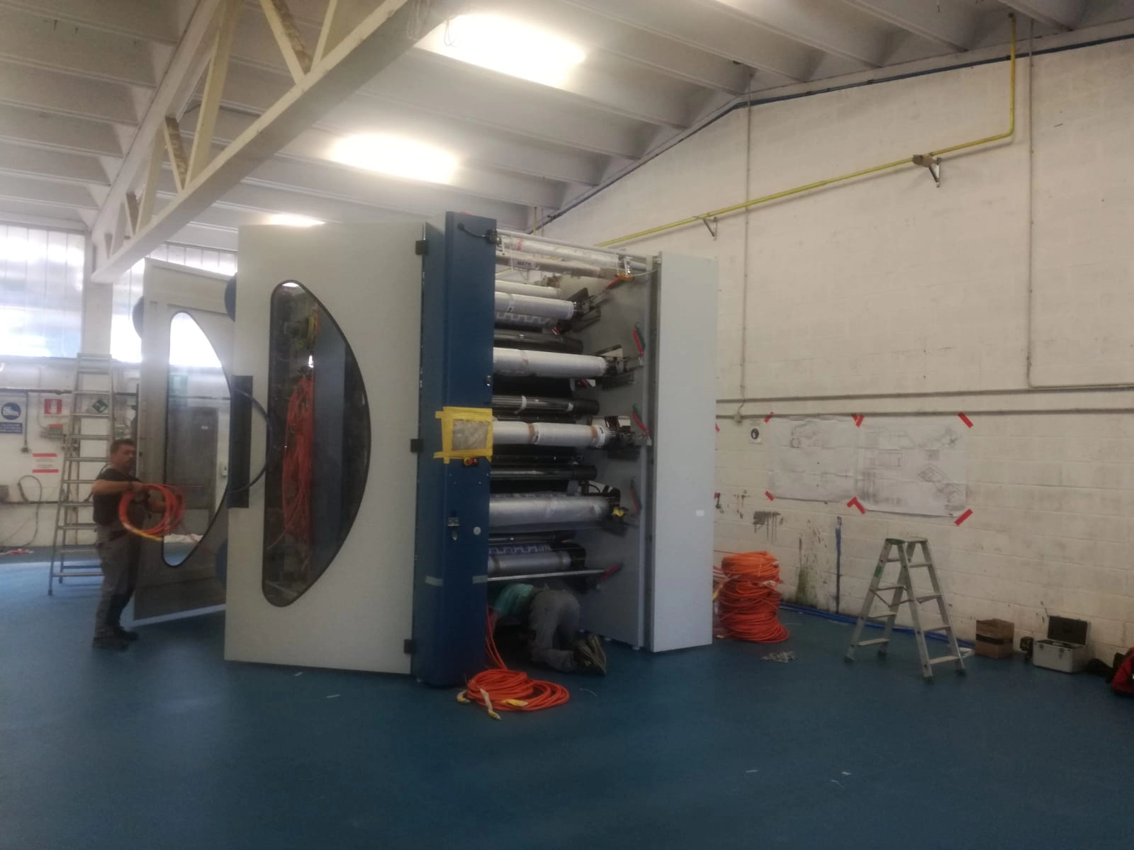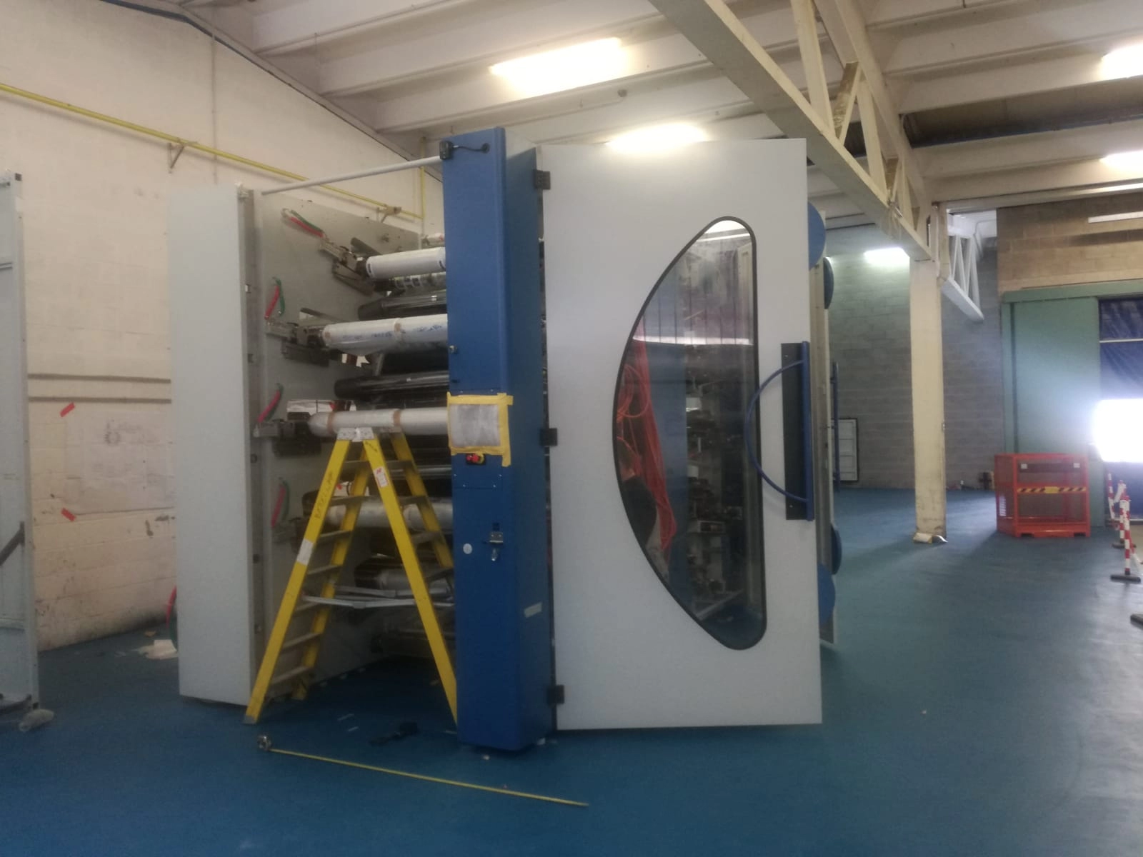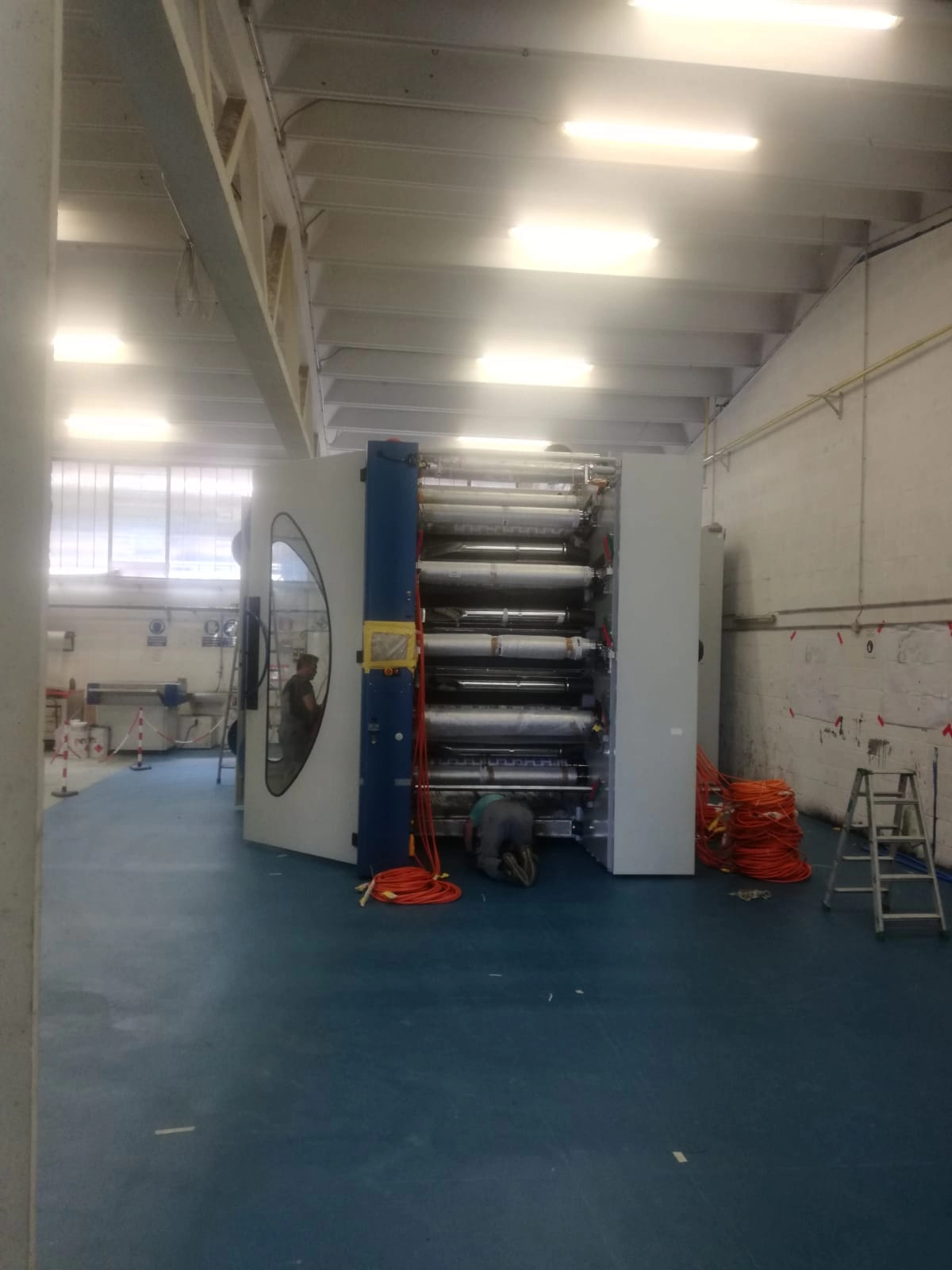 Montaggio gruppi stampa di una rotativa KBA commander con cavallette idrauliche.