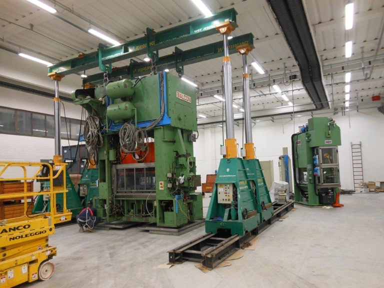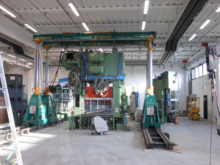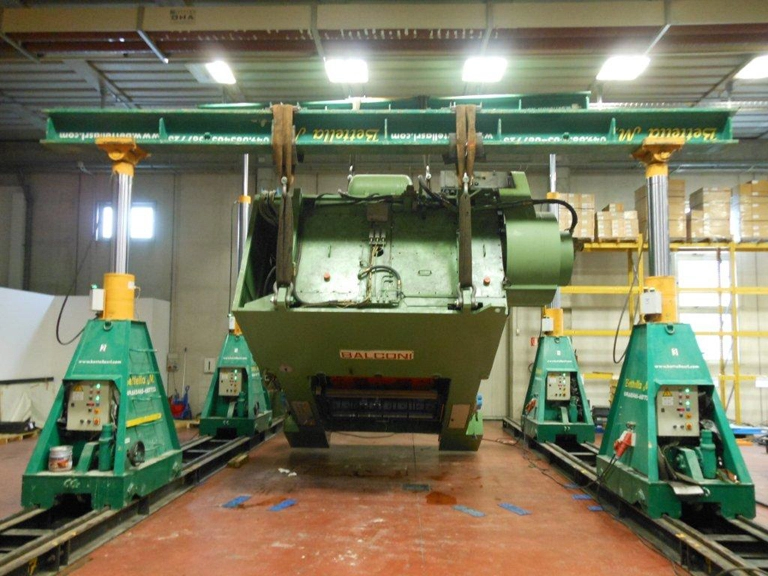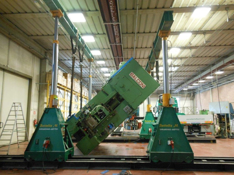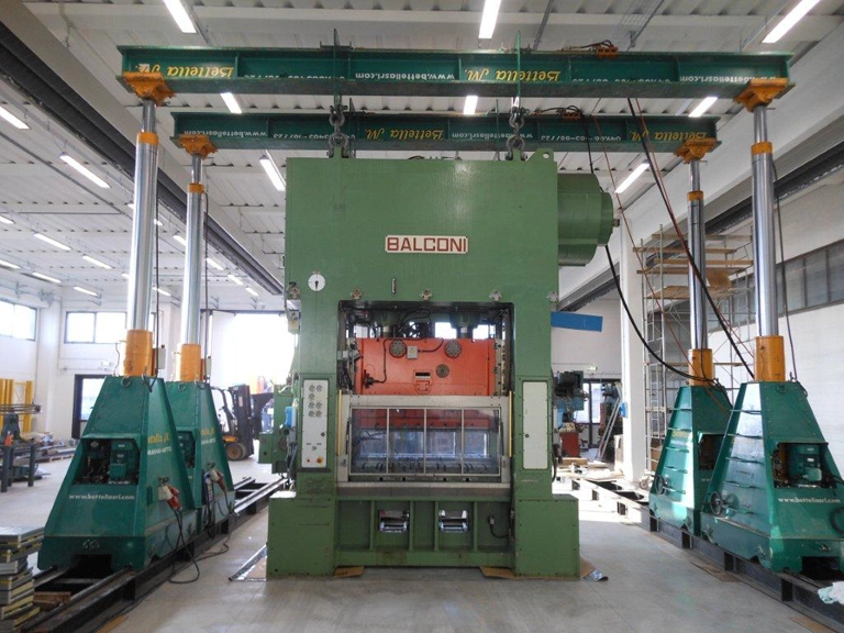 Posizionamento di una pressa Balconi con cavallette idrauliche.